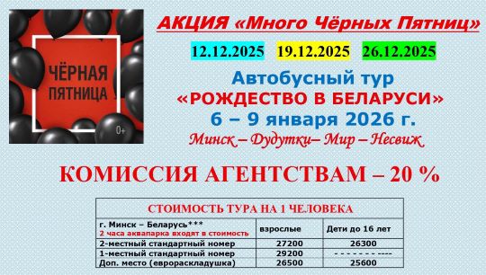 Акция на тур Рождество в Беларуси 6-9 января 2026
